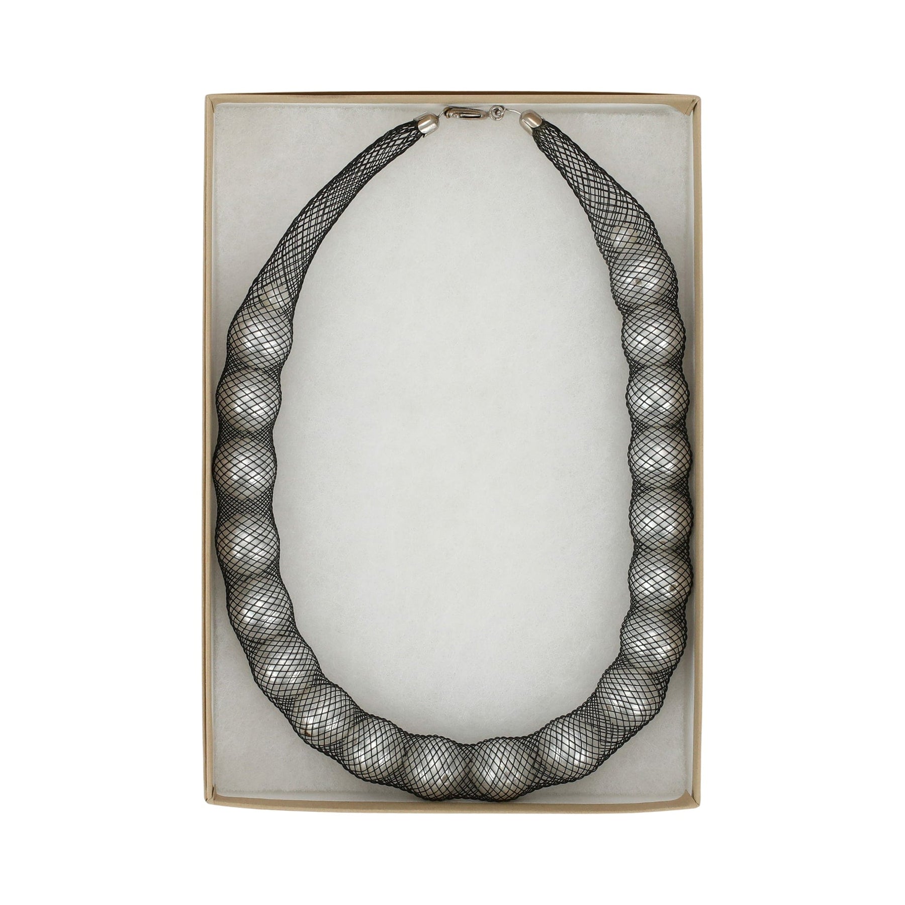 The Perla Large Pearls Necklace is a striking, unique piece with a wonderful story. VIETRI founder Susan Gravely came across a beautiful mesh and pearl necklace in Milan in 1985. She asked her dear and talented Florentine friend, Tita Bosio, if she might be able to recreate it so that VIETRI could sell something similar. Tita sourced the pearls very easily, but the mesh netting seemed hard to find. She scoured markets and shops to no avail. Not to be deterred, Tita eventually found what she was looking for in an automobile repair shop! She created the bestselling necklaces for VIETRI for many years, and eventually the product was retired. We are delighted to bring the necklaces back, and they are now handmade by Tita's daughter-in-law.