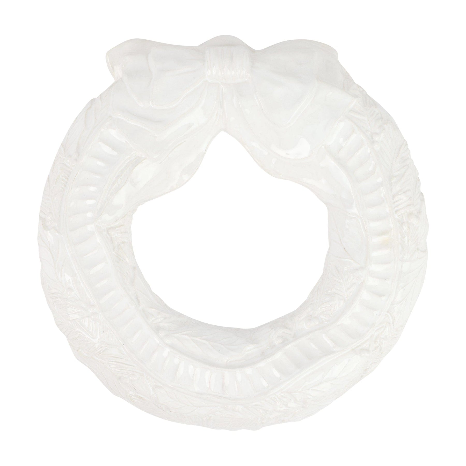 The Pietra Natale Figural Wreath wall piece, handcrafted in Tuscany from Italian stoneware, captures the holiday spirit with its intricate details and elegant design. The soft white finish adds a serene and sophisticated touch to any space, making it a timeless addition to your holiday décor.