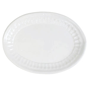 Pietra Serena, meaning serene stone, represents the simplistic beauty of the handpressed design found on the Pietra Serena Small Oval Platter.