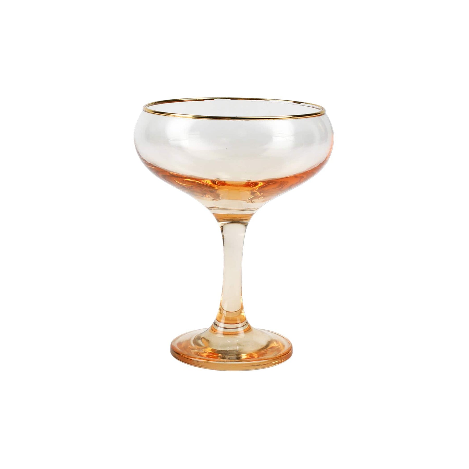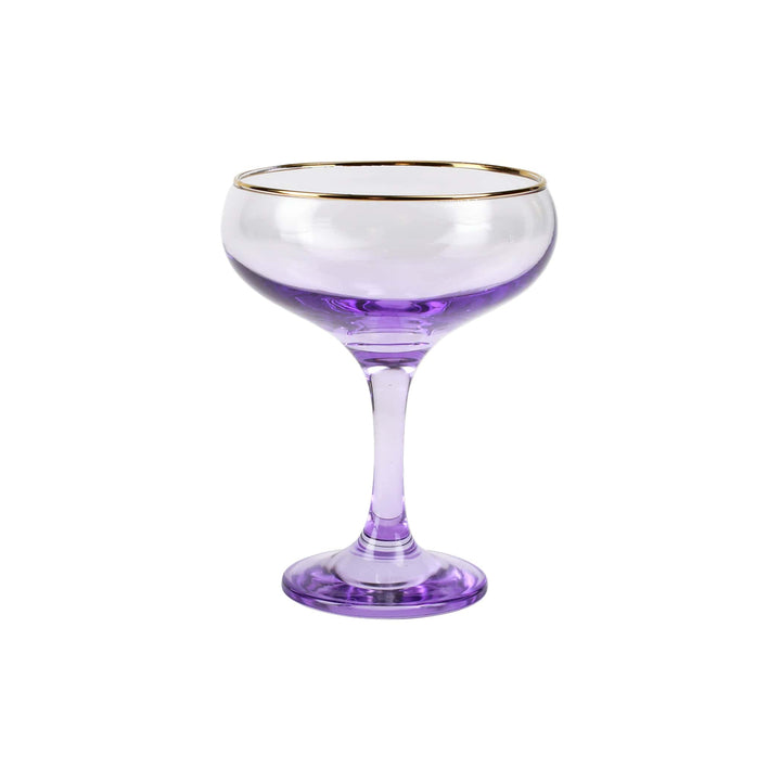 Add sparkle to any setting with a gilded gold rim and varied colored glass that refracts light on the Rainbow Coupe Champagne Glass.