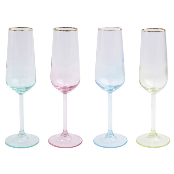 Add sparkle to any setting with a gilded gold rim and varied colored glass that refracts light on the Rainbow Margarita Glass.