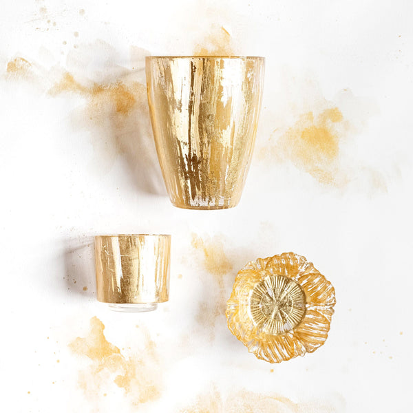 The Rufolo Glass Gold Brushstroke Votive brings luster to your table. The glass piece is encircled with glowing golden strands, and the embellishment is effortlessly beautiful.