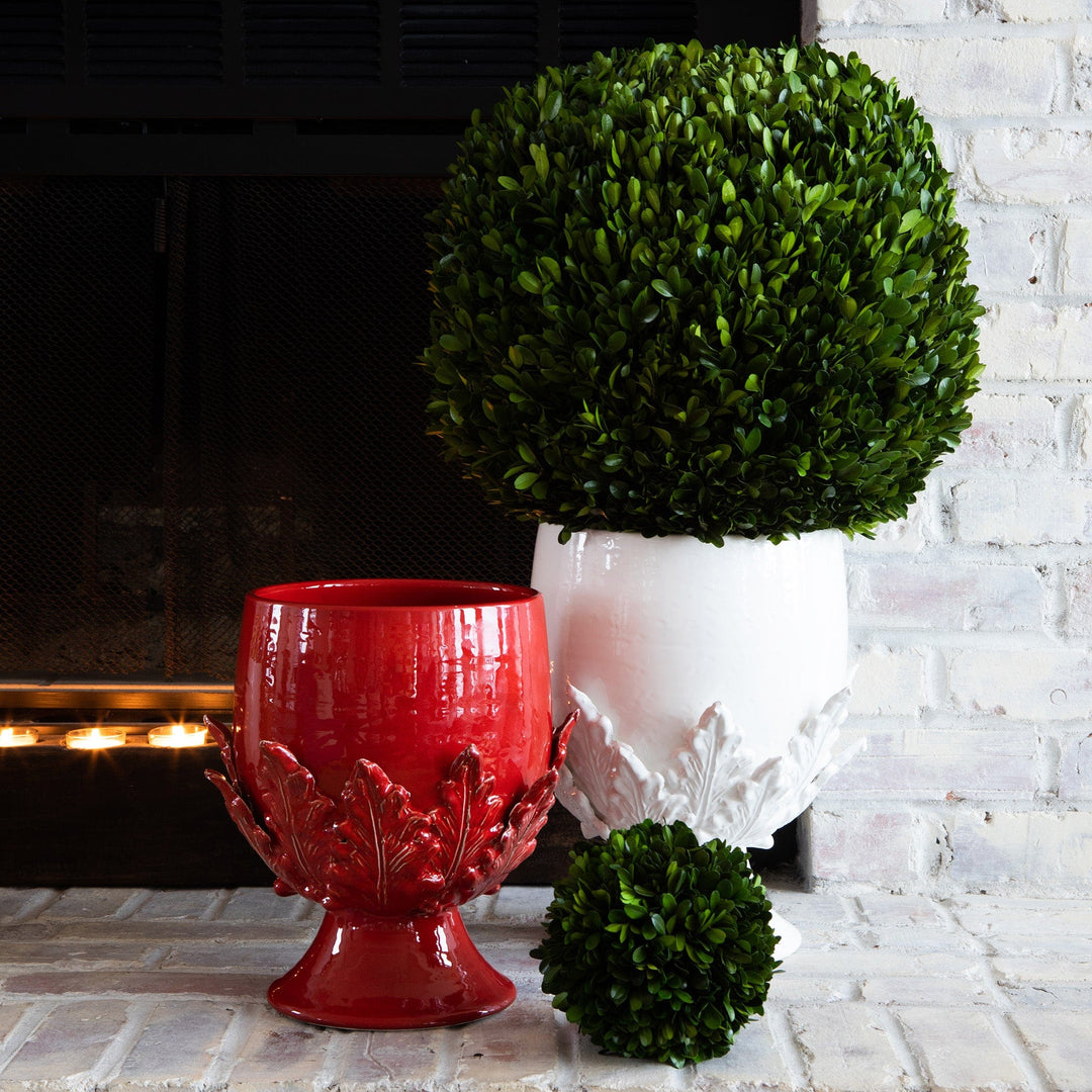 Rustic Garden Red Acanthus Leaf Medium Footed Cachepot