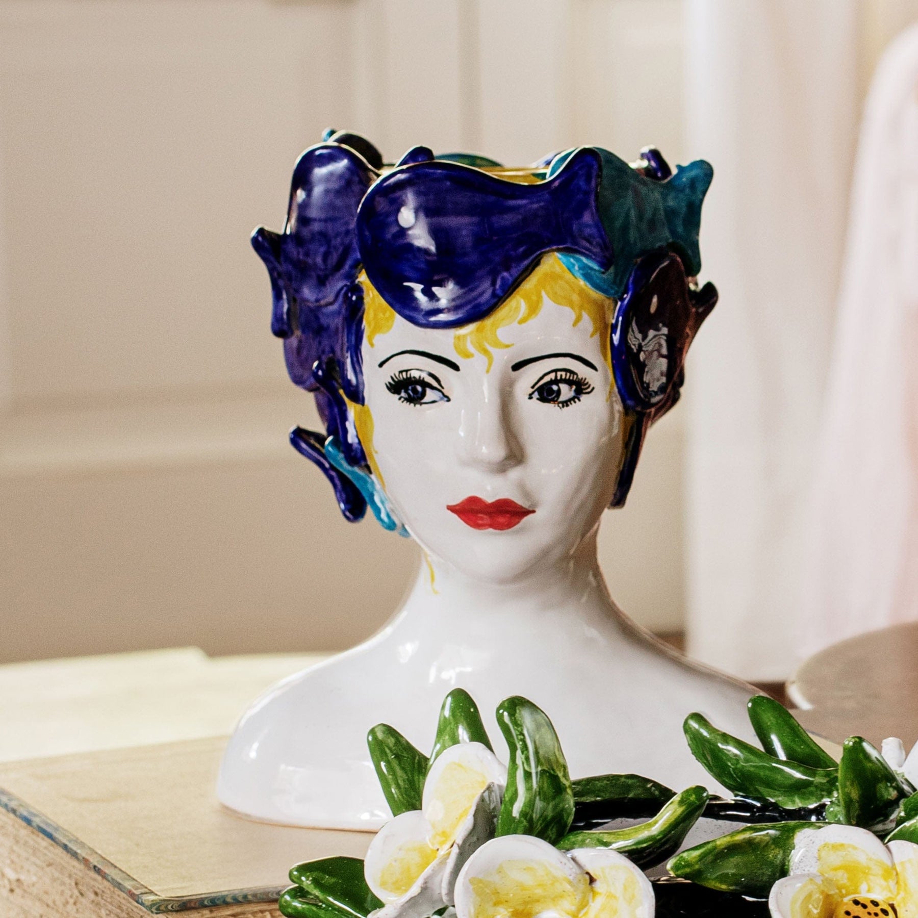 A stunning showpiece for your home or garden, the Sicilian Heads Petite Pesci Head showcases impeccable detail and timeless beauty. The tradition of Sicilian Heads spans centuries, celebrating the elegance, strength, and resilience of women through intricate, expressive sculptures.