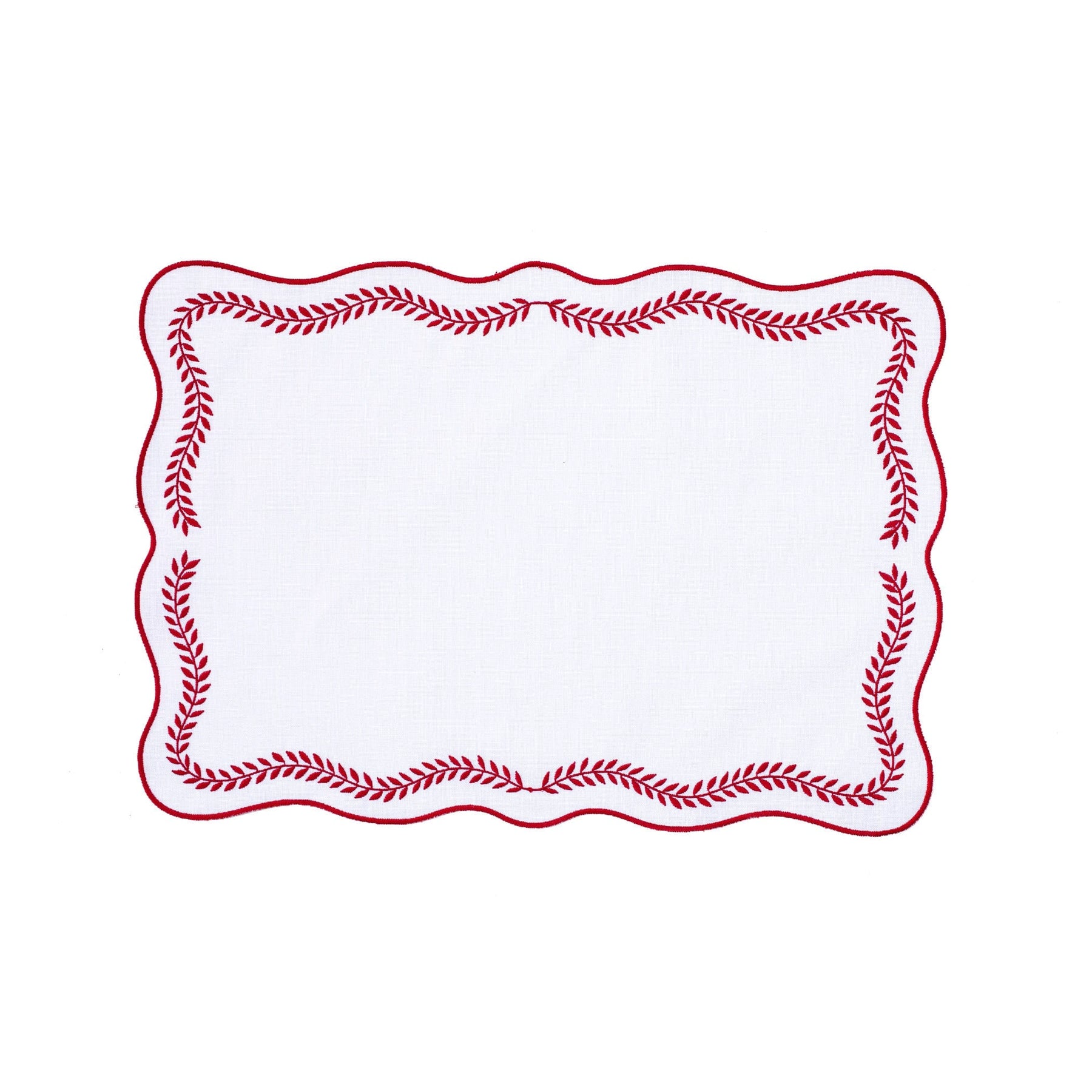 Tessuti White Rectangular Placemats with Red Ivy - Set of 4