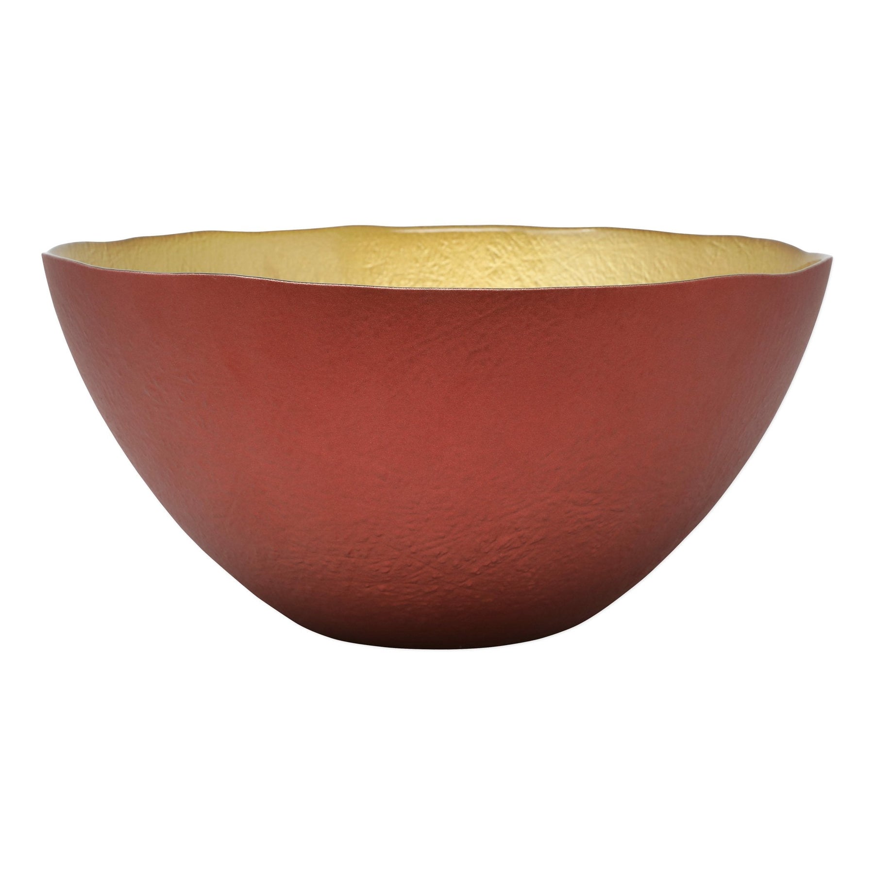Two-Tone Glass Red & Gold Large Deep Bowl