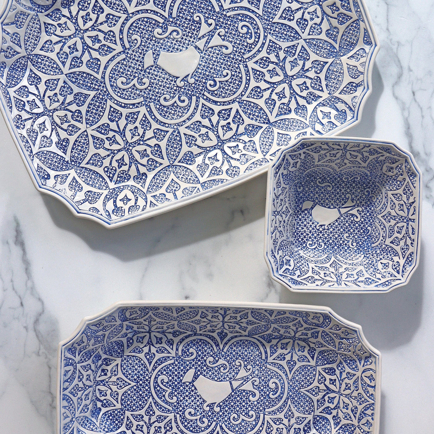 Inspired by the handpainted tiles and textiles of Italy, Uccello Blu pays homage to the country’s long tradition of intricate, geometric designs. Italian artisans bring a fresh element to this collection with each piece’s crisp, graceful edges and the plucky, good luck bird hidden in the design.