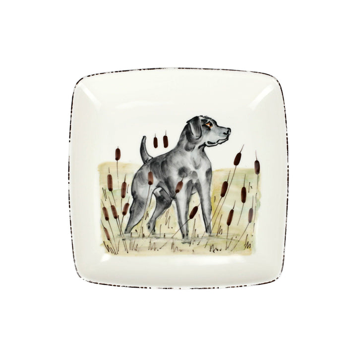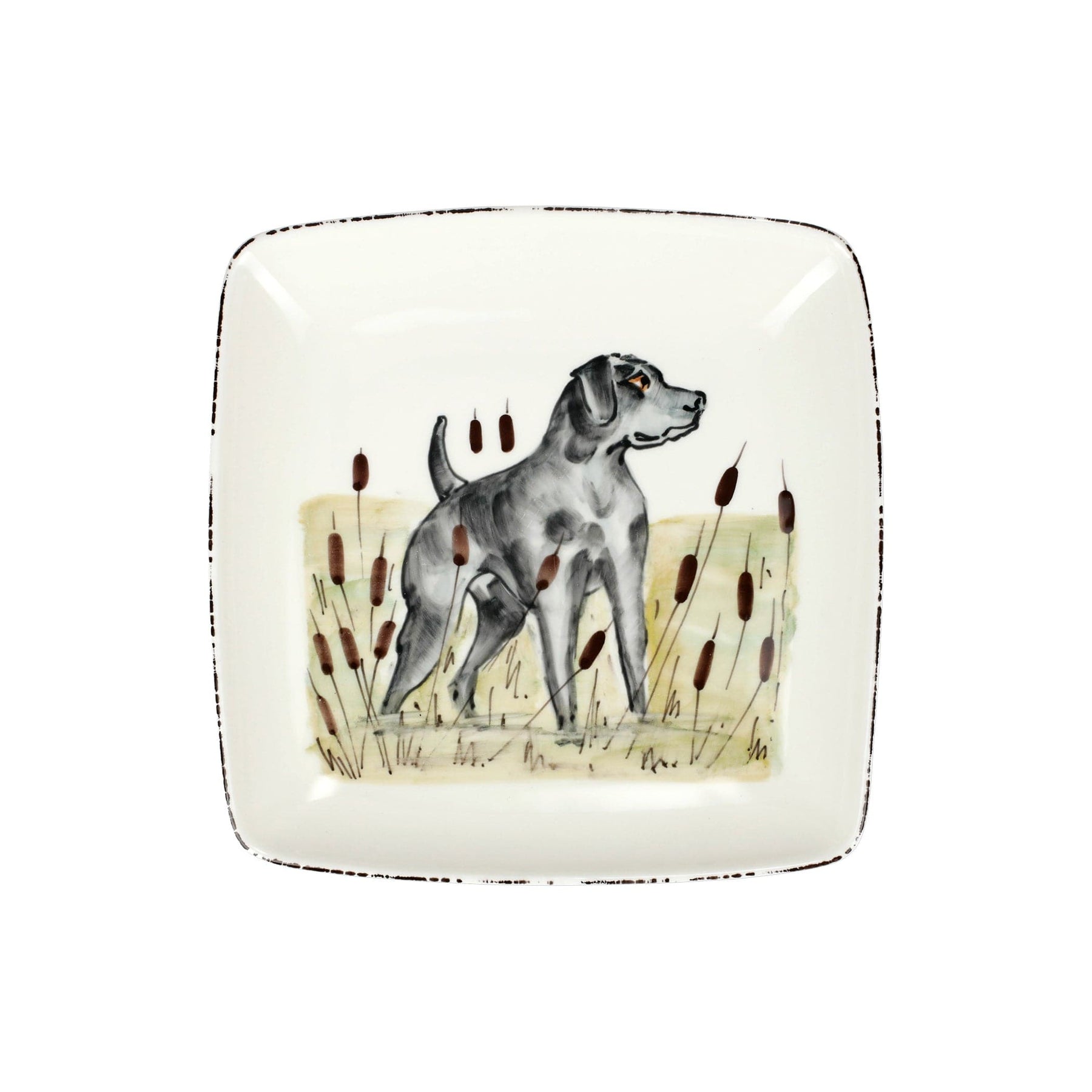 Bring the grandeur of wildlife and the traditional Italian hunt to your home with this whimsical collection. The Wildlife Black Hunting Dog Square Platter perfectly complements any den, dining room, or living room.