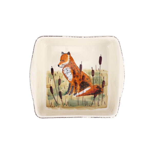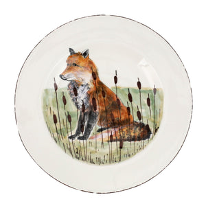 Bring the grandeur of wildlife and the traditional Italian hunt to your home with this whimsical collection. Handpainted, the Wildlife Fox Rimmed Round Platter is both sophisticated and rustic.
